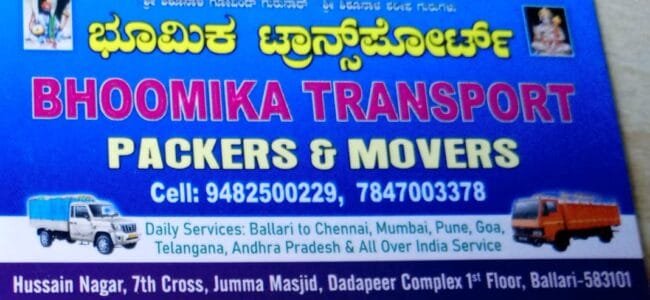 Bhumika packers and movers in Bellary is provide safe, reliable, and hassle-free relocation services for homes, offices, and commercial spaces. With Bhumika packers and movers expert packing techniques, high-quality materials, and trained staff, trusted packers and movers ensure your belongings are protected throughout the moving process. From careful packing and secure loading to timely transportation and efficient unloading, every step is handled with precision and care. All over india our services available.