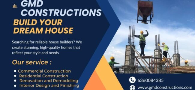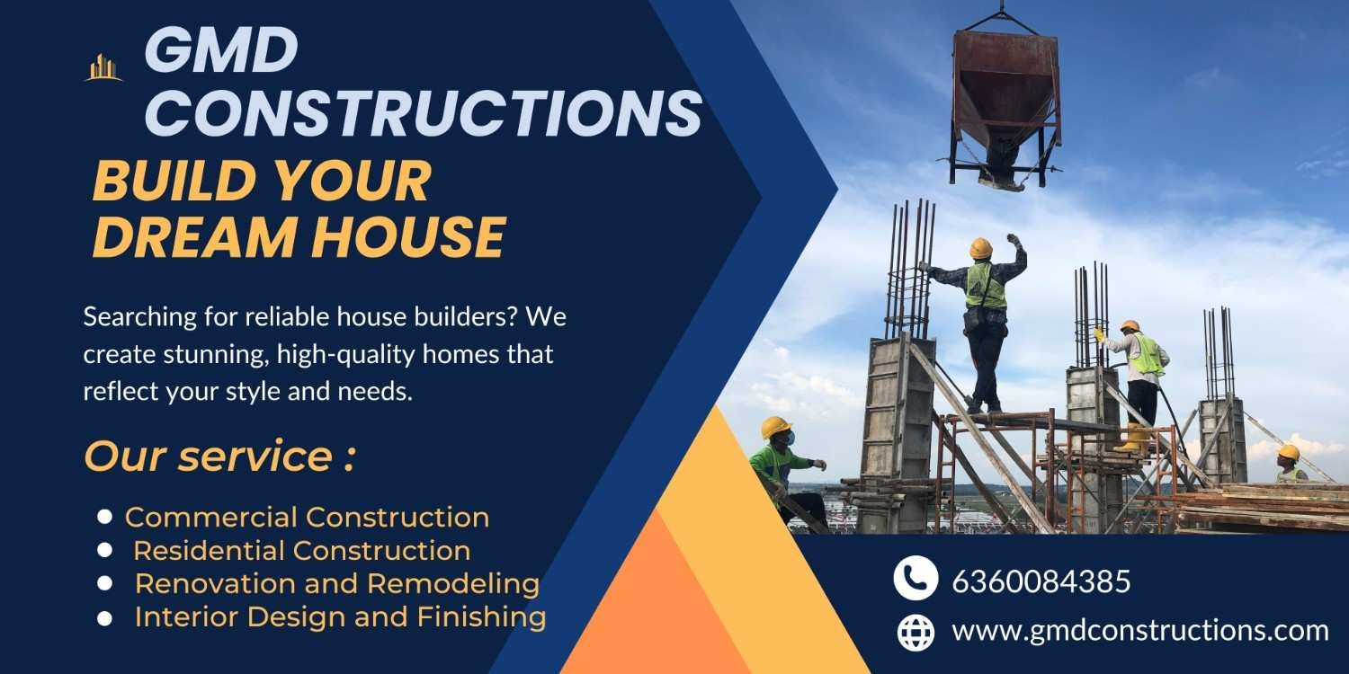 Searching for reliable house builders? We GMD constructions house builders create stunning, high-quality homes that reflect your style and needs. Our skilled team handles everything from design to completion with precision, honesty, and care. Enjoy a smooth building experience and exceptional results when you trust us to bring your dream home to life.
