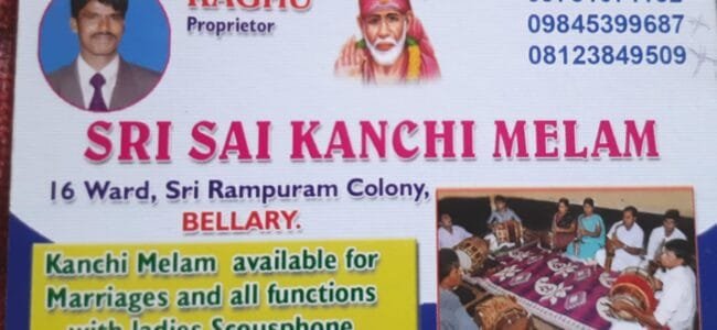 Sri sai kanchi melam is the popular one of the top mangala vadhyan or  marriage bands mela in and around Bellary/Ballari city.